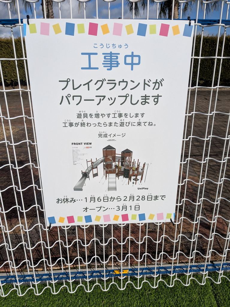 パワーアップ工事中でフードコート横のプレイグランドが閉鎖されていました。3月1日にオープン予定のようです。