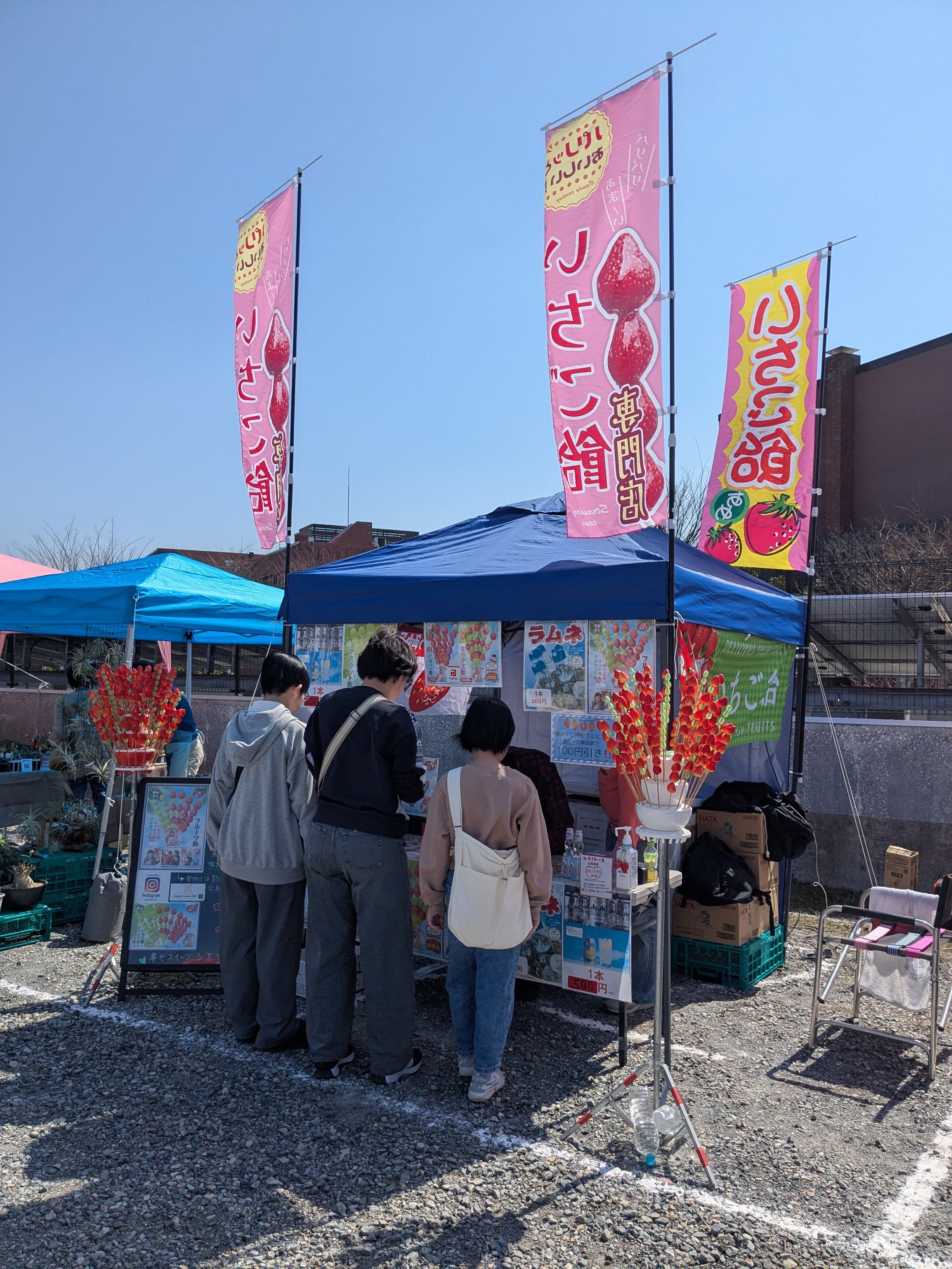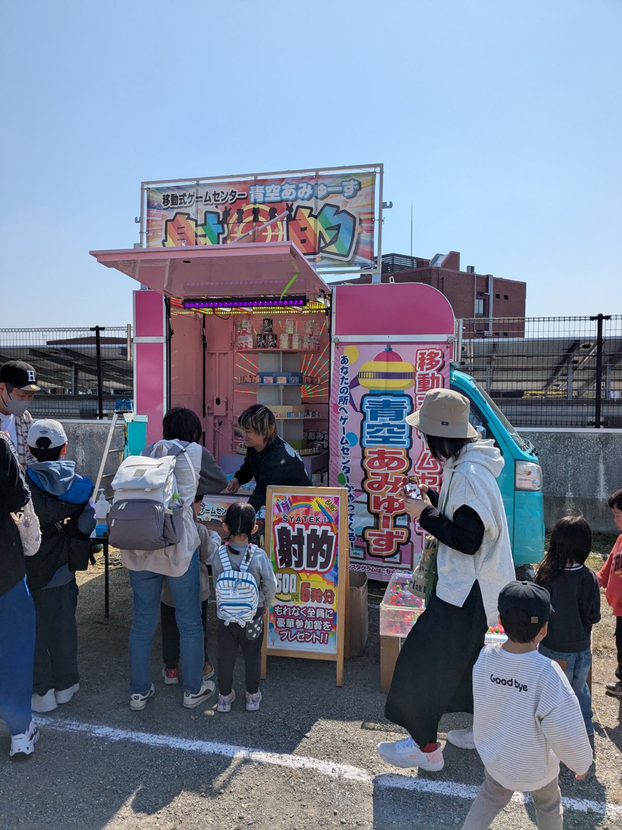 消防署のCRP体験や、軽トラの荷台に射的がセットされた移動射的屋さん、その他にも食べ物屋さんが多く来ていました。こどもはいちご飴を食べて満足していました。