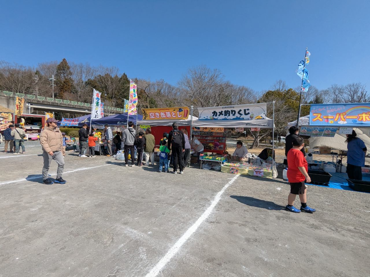 消防署のCRP体験や、軽トラの荷台に射的がセットされた移動射的屋さん、その他にも食べ物屋さんが多く来ていました。こどもはいちご飴を食べて満足していました。