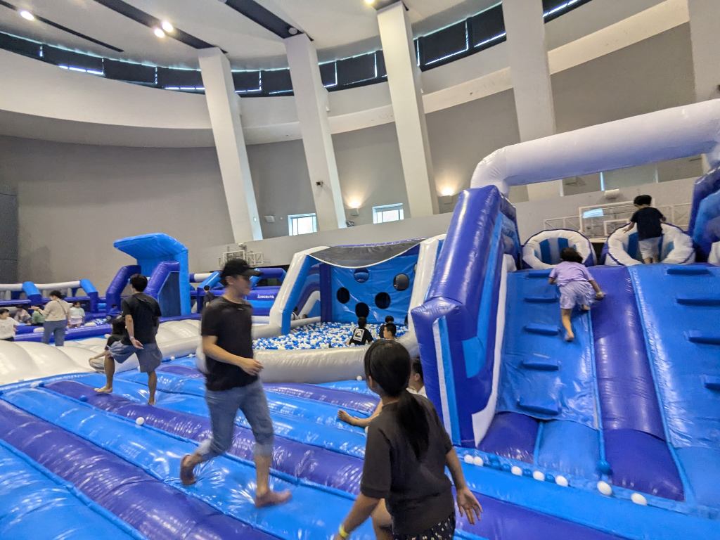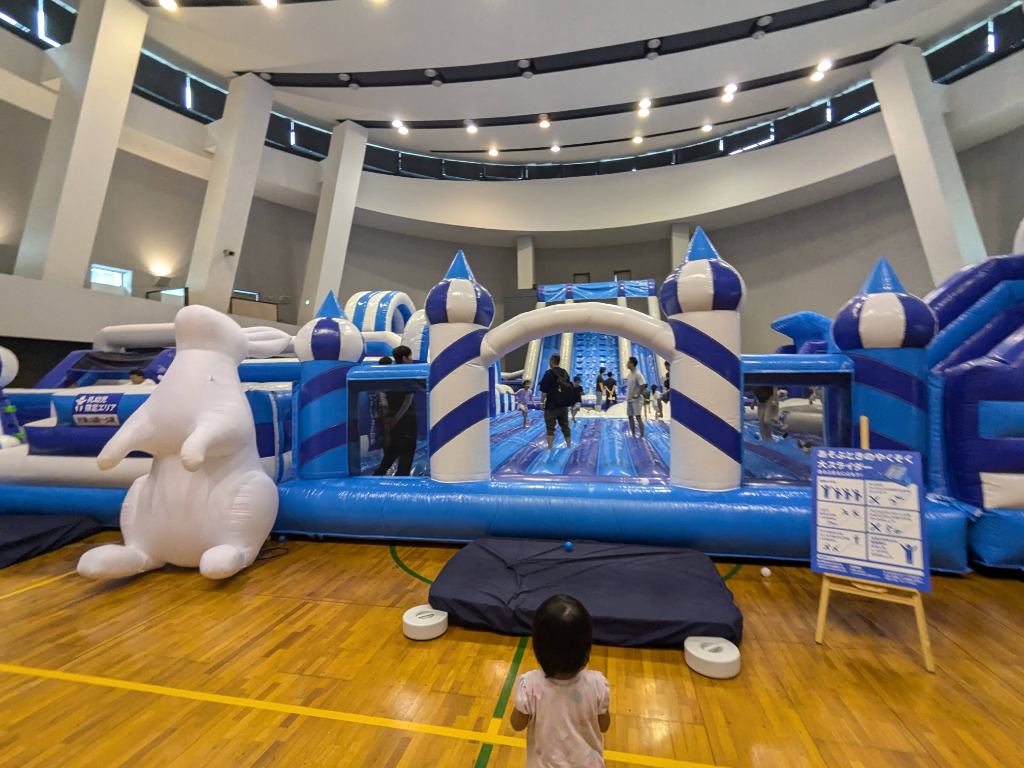 2024年7月にひよしプレイアリーナとして大型のエア遊具が新設されました。それまでダムと道の駅にしか遊びに行く目的がありませんでしたが、小さな子供もセットで遊びに行ける施設になりました。プールと温泉も別料金で可能ですが、プールが信じられないくらい冷たいので注意が必要です。 ひよしプレイアリーナは非常に人気で休日は整理券配布で1時間以上の待ち時間が発生するため、午前に遊ぼうと考えられている方はオープン時間よりだいぶ前に並ぶ必要があります。待ち時間の間も、キャンプ広場で遊ぶことは可能なので、待ちぼうけということはありません。