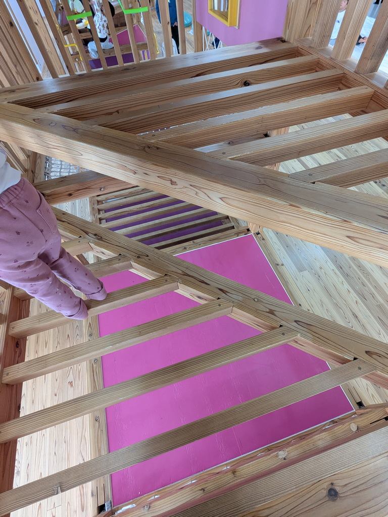 木でできた遊具を売りにしているのは非常に良いのですが、木でできている以上、ササクレ等で怪我をするおそれがあります。スタッフが傷を見つけたら養生テープを貼り付けていますが、養生テープの場所が多く、子どもが走り回って剥がれてしまっている箇所もあるため、小さな子供は少し気をつけたほうが良いです。